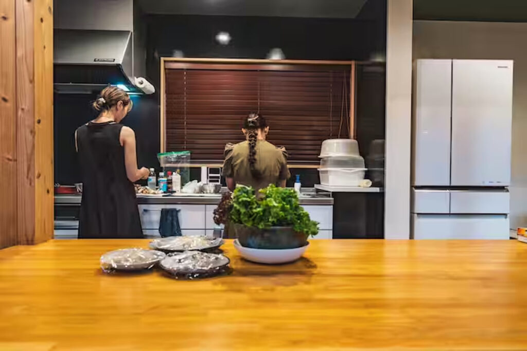 最新の設備を備えたキッチンは、みんなで料理を楽しむのにぴったり。地元の食材を使ったパーティー料理や、心温まる家庭の味も自由に作れる空間です。